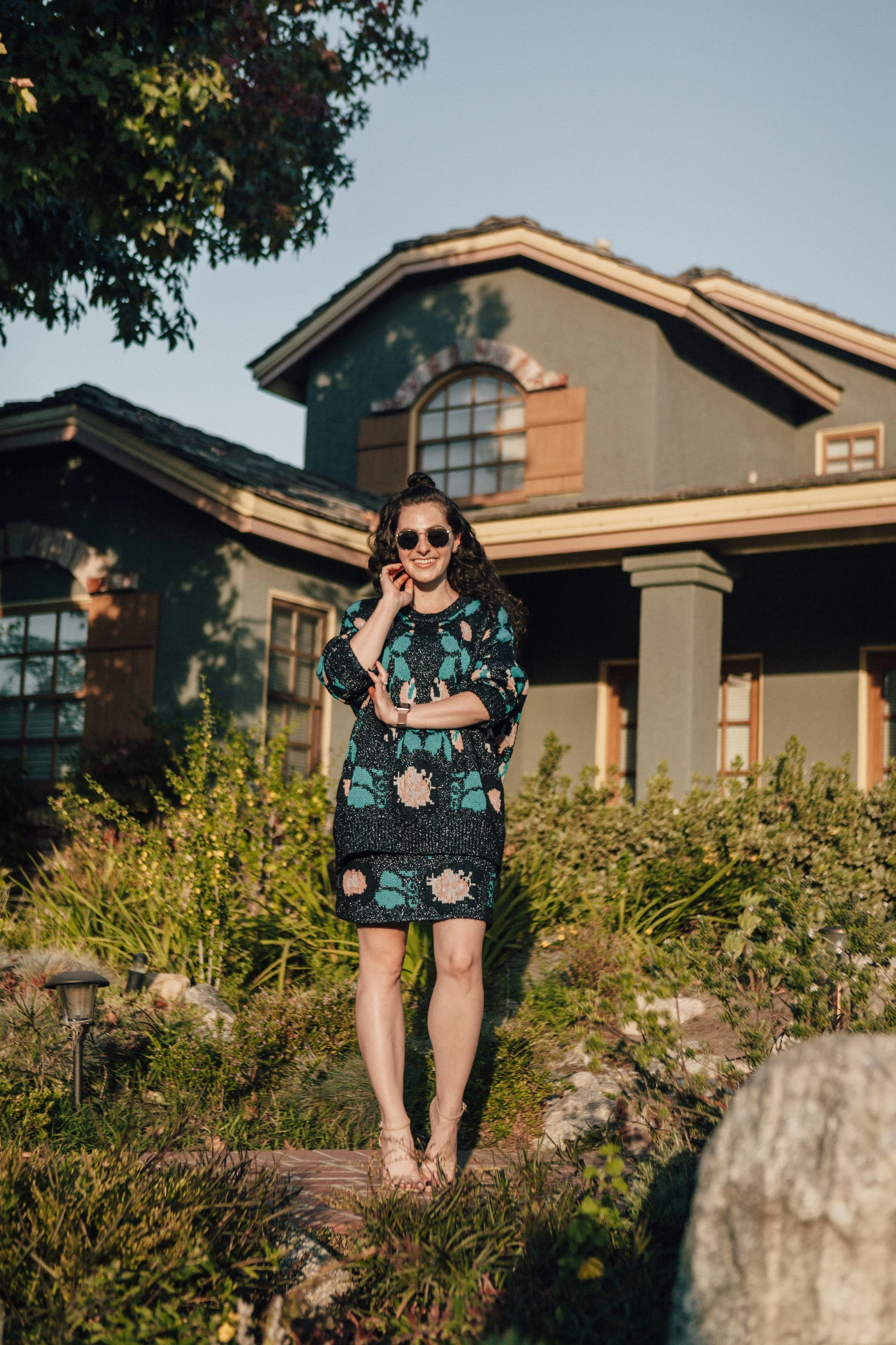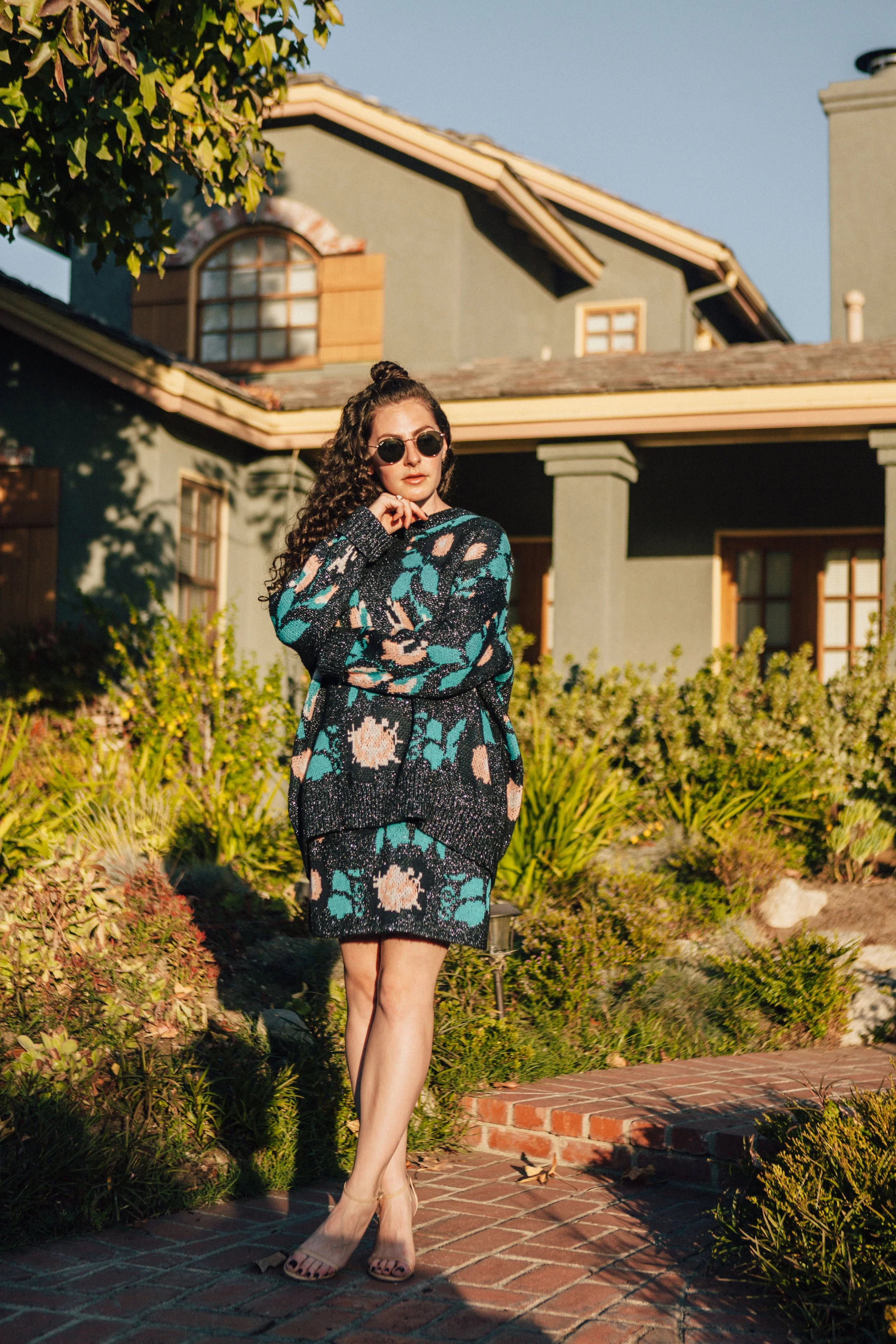 This sweater and skirt combo sort of reminds me of one you'd wear to an ugly sweater party but I love it at the same time. Today, I styled it with nude heels and classic round sunnies.