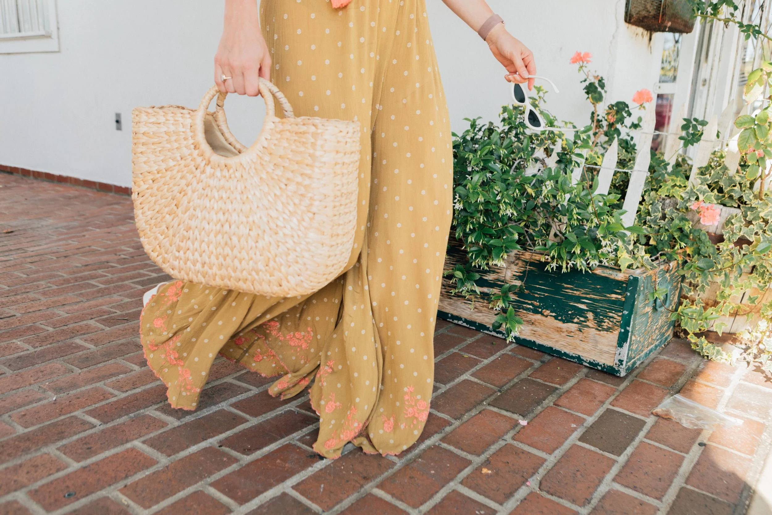 I topped off the look with a seagrass bag I've been loving this season, threader bar earrings that loop from your first hole to your second (especially obsessed with these!) and white cat eye sunnies.