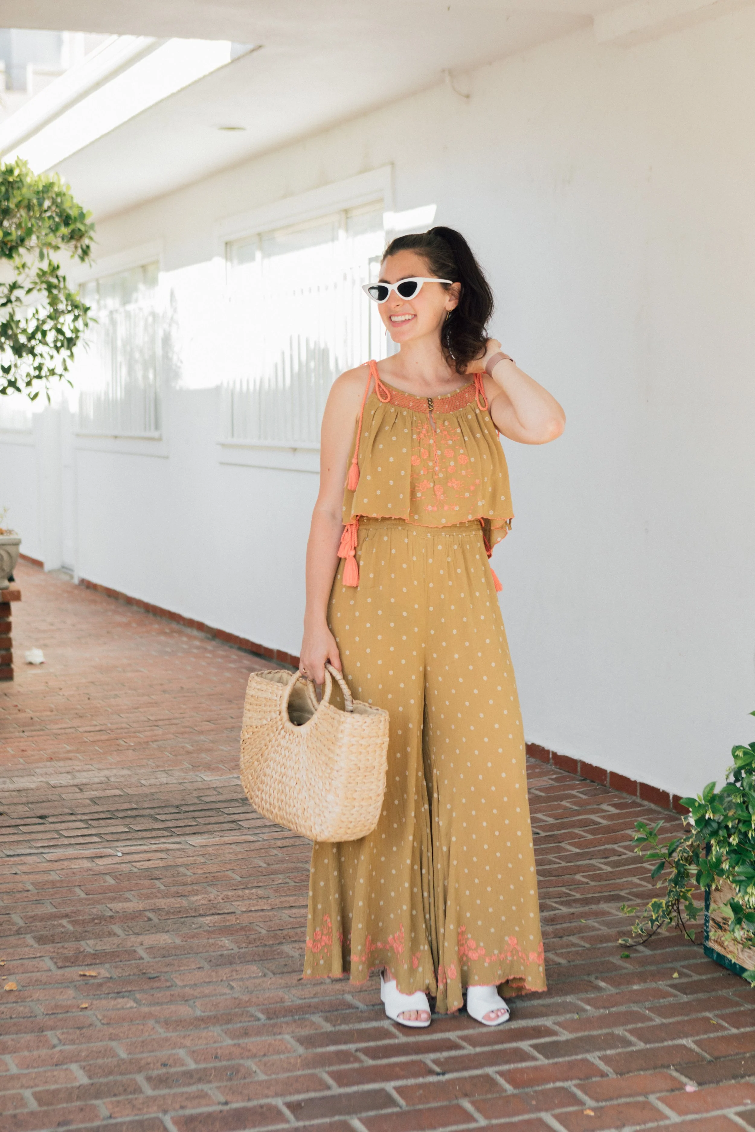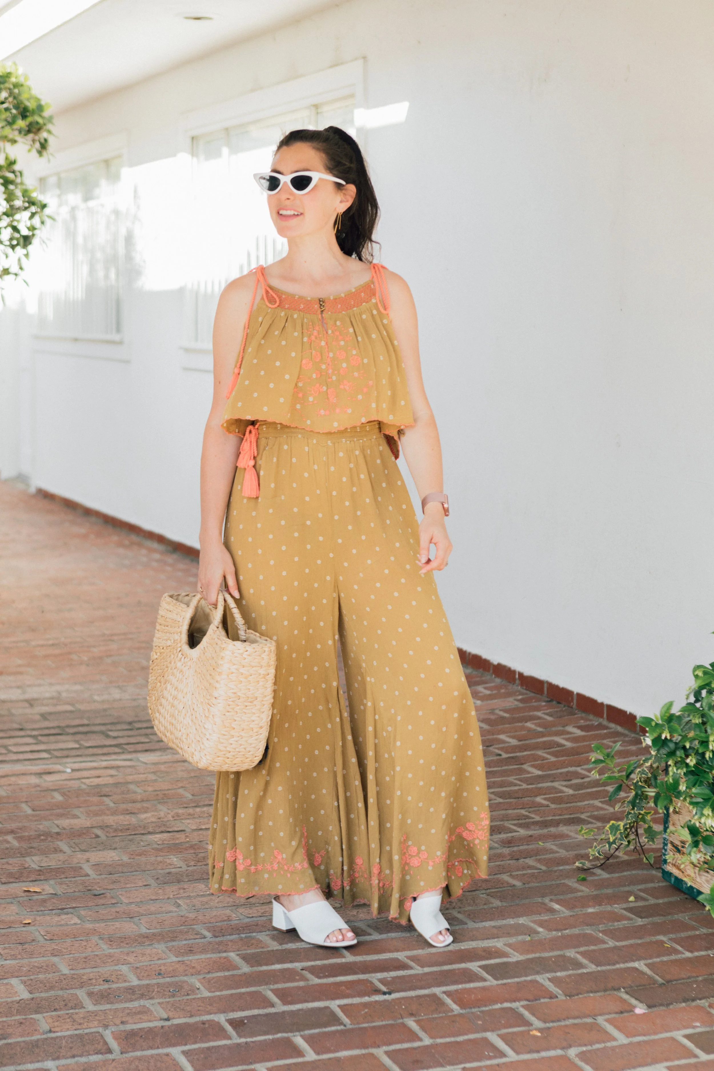 I scooped up this matching polkadot set from Free People. If you're looking to add this outfit to your wardrobe, a heads up it runs on the larger side. I'd suggest purchasing one size down--especially since the pants are so oversized.