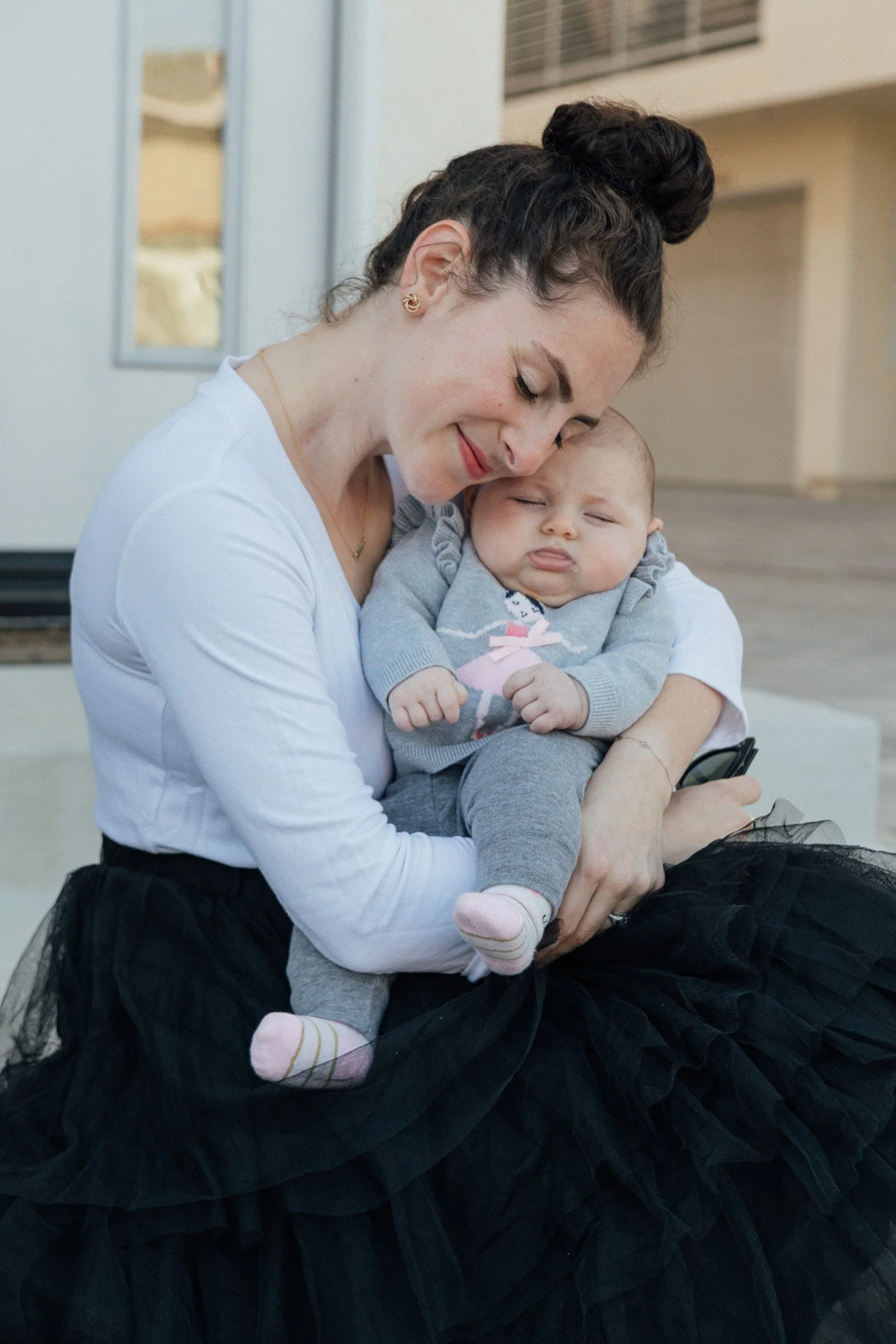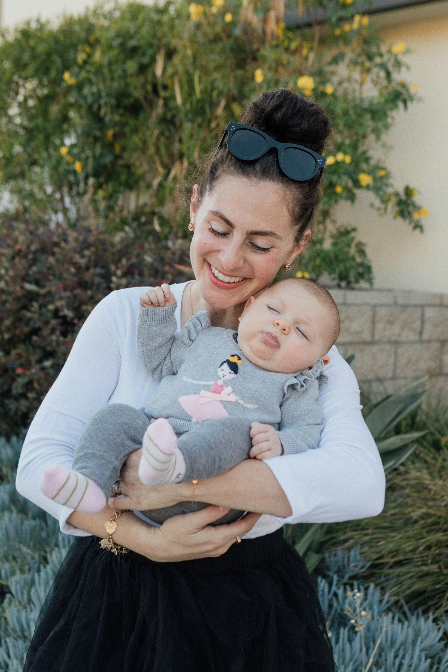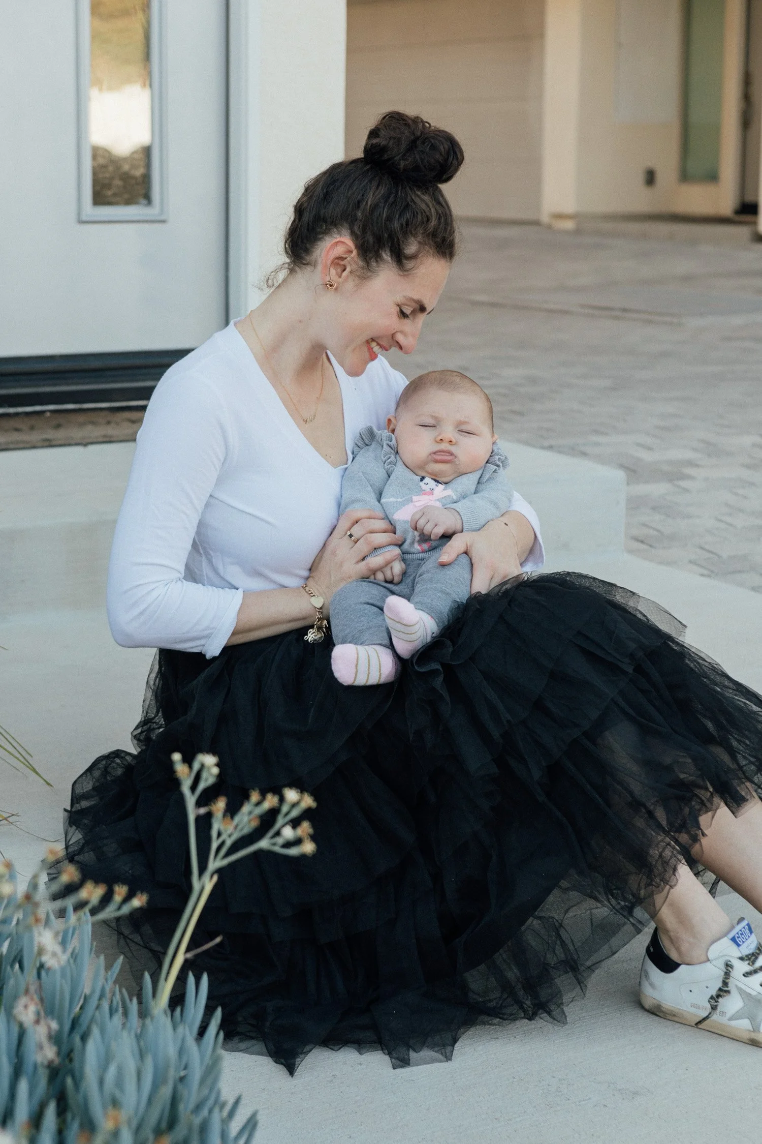 I blinked and Sadie is officially over three months old! Sharing some of my favorite recent shots of her and Naiya with you today as well as where to snag my favorite black tulle skirt. I recently posted this look on instagram and received a bunch of DM's about it. It happens to be on sale so I'm linking to it below. I also wore this skirt in pink a couple years ago (here) but this time, I dressed it one down with the comfiest sneakers because #momoftwolife.