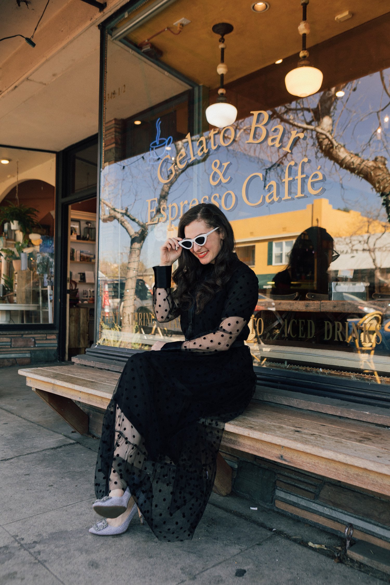 This look is actually a black t-shirt dress styled with a polkadot overlay on top. I cinched both layers together at the waist with a simple black belt.I originally scooped up this overlay from Zara and it's become a wardrobe staple.