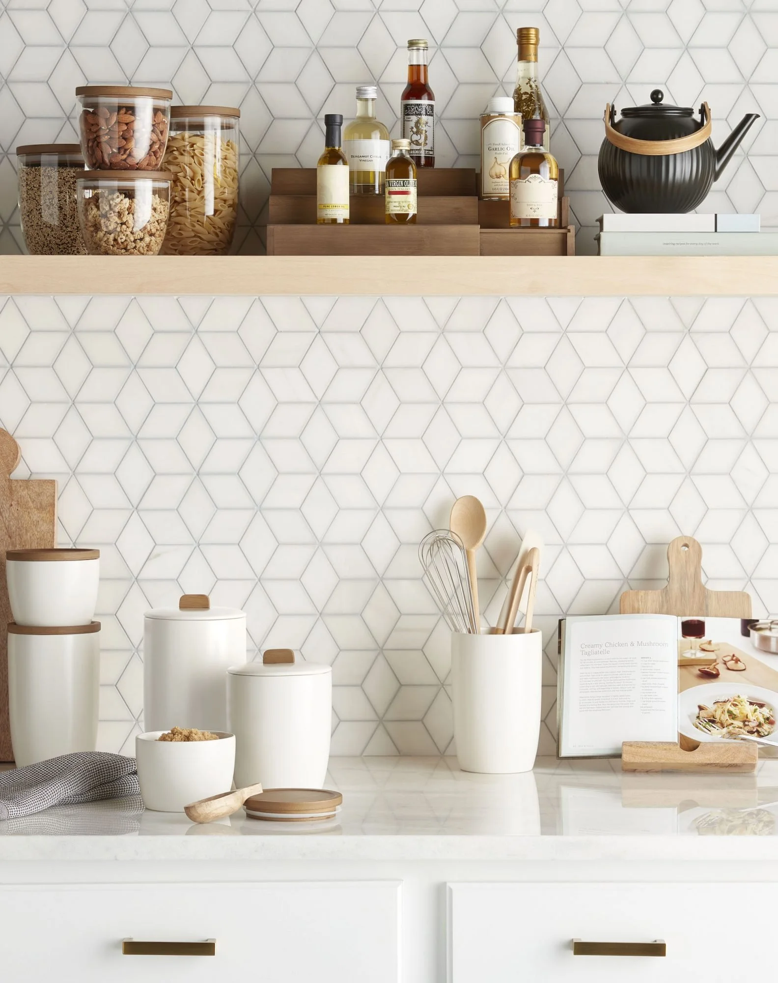 When it comes to organizing our kitchen, it's all about cleaning out all of the extra noise. We don't have as much pantry or cabinet space as we'd like with two kids and SO many snacks but Marie Kondo's three tier expanding shelves are our holy grail! They're made beautifully in a deep wooden color and they create extra, clean, much-needed space.The white, black and clear glass jars within this collection are also amazing. You can add sugar, spices, pasta, almonds--whatever you want into these--and they look SO clean! Linking to so many other kitchen items I can't get enough of from this collection above. By the end of 2021, maybe we'll finally have the kitchen organization of my dreams (and maybe the kids and I won't constantly destroy it!). A mama can always dream!