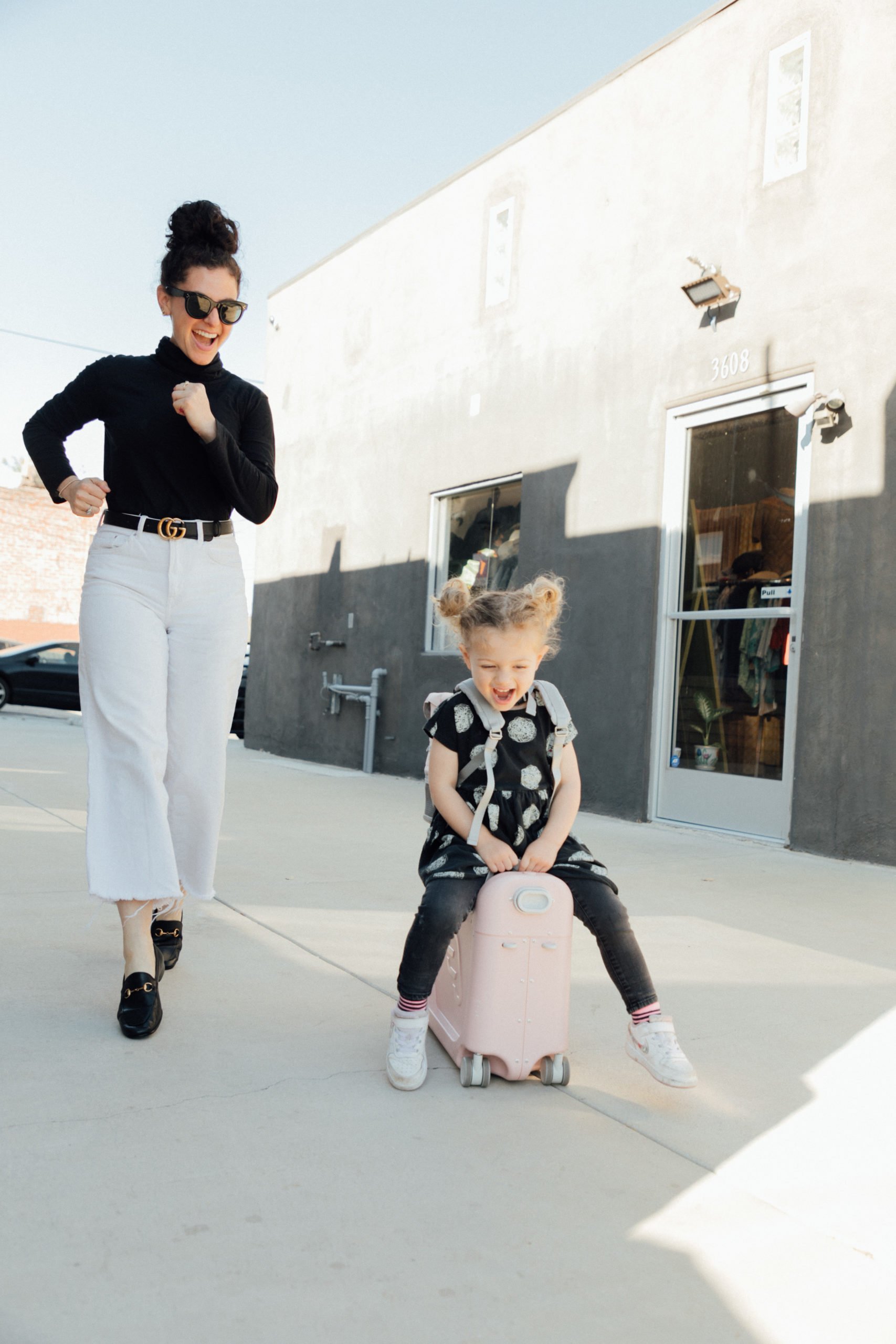 Our family has officially fallen in love with JetKids by Stokke--a brand that makes traveling fun, easier (and chic!) for your minis. I first came across JetKid's colorful ride-on suitcases, soft merino wool blankets and spacious travel backpacks on IG. The products were SO memorable and functional, I knew our girls HAD to have them too. After all, traveling with our kids as much as possible is part of our family's DNA (more here and here). Sharing my favorite JetKids products with you today, breaking down how they work, and sharing some photos of Naiya and Sadie obsessing over them. At this point, we literally can't imagine traveling without JetKid's line so I'm excited to share our review. Scroll down to the bottom of this post for a 25% off discount code!
