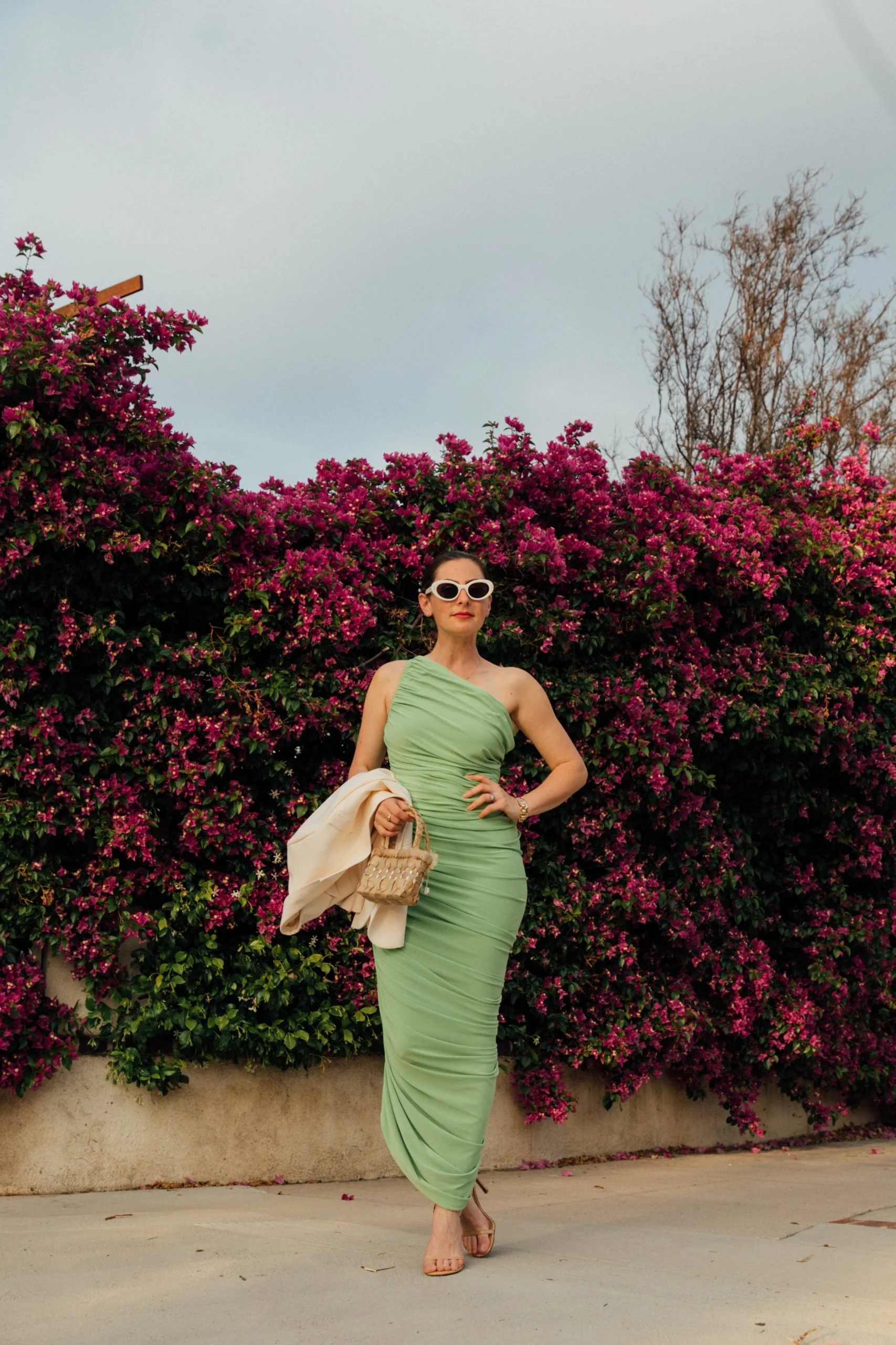 If you're in the market for a comfy, chic wedding guest dress, look no further than this one-shouldered bright frock. It comes in a number of different eye-popping colors and neutrals alike. Today, I'm excited to share where to snag it and I'm letting you in on some sizing tips too.