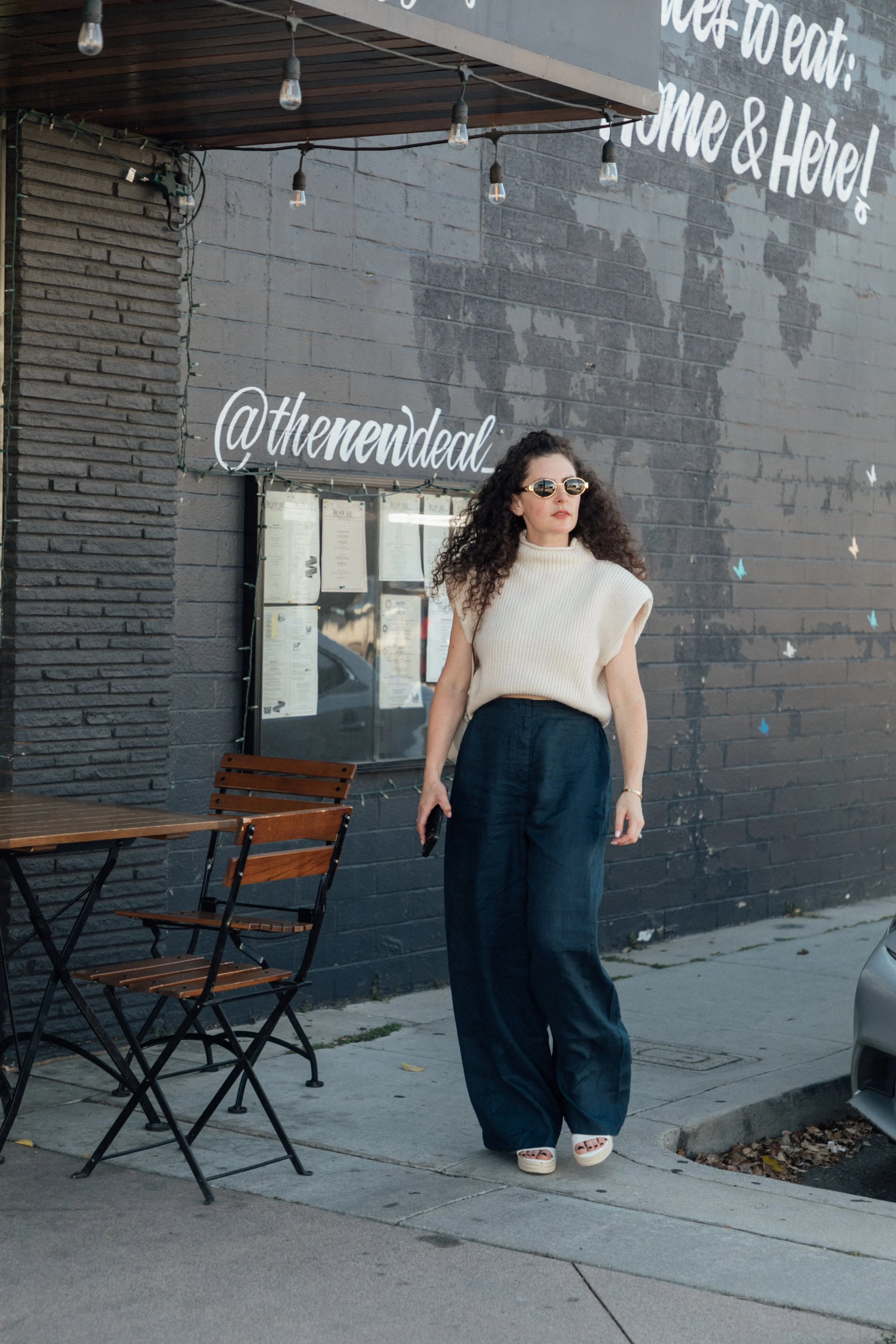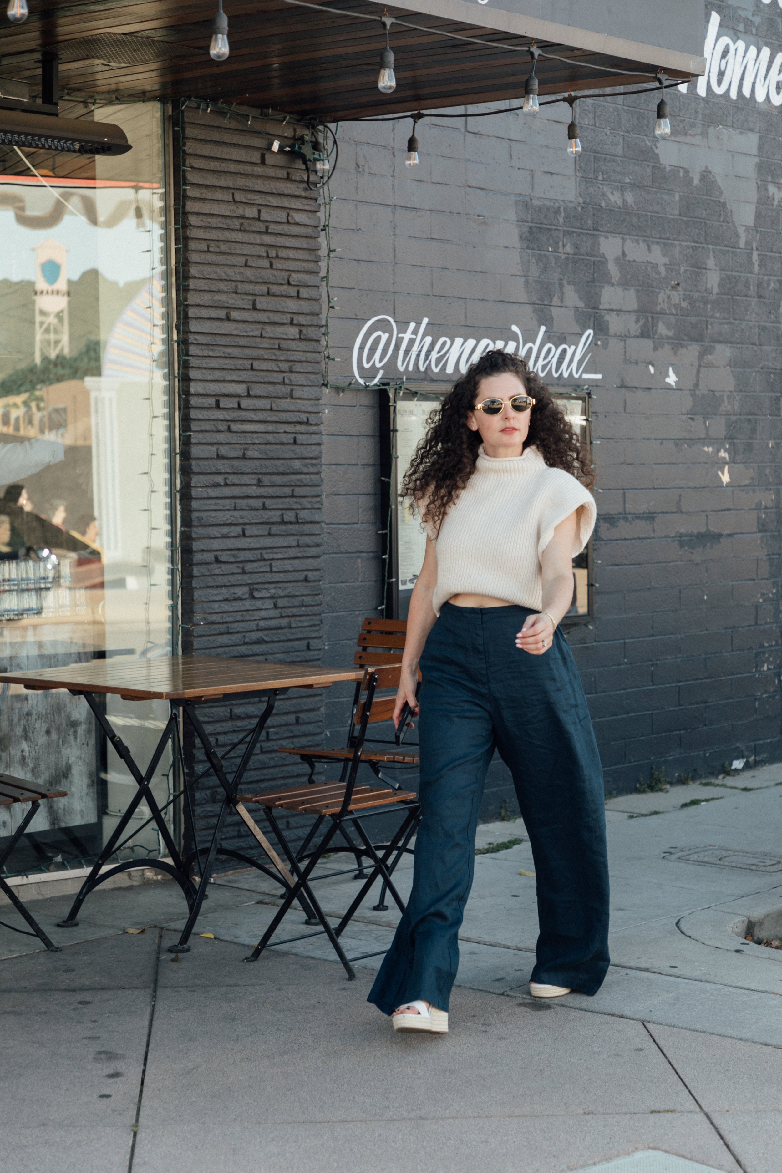 I paired my Darling linen pants with a sleeveless sweater that happens to have shoulder pads. Maybe it’s the 1980’s girl in me looking for something fun and nostalgic to wear but I’ve found I’m always here for a shoulder pad!