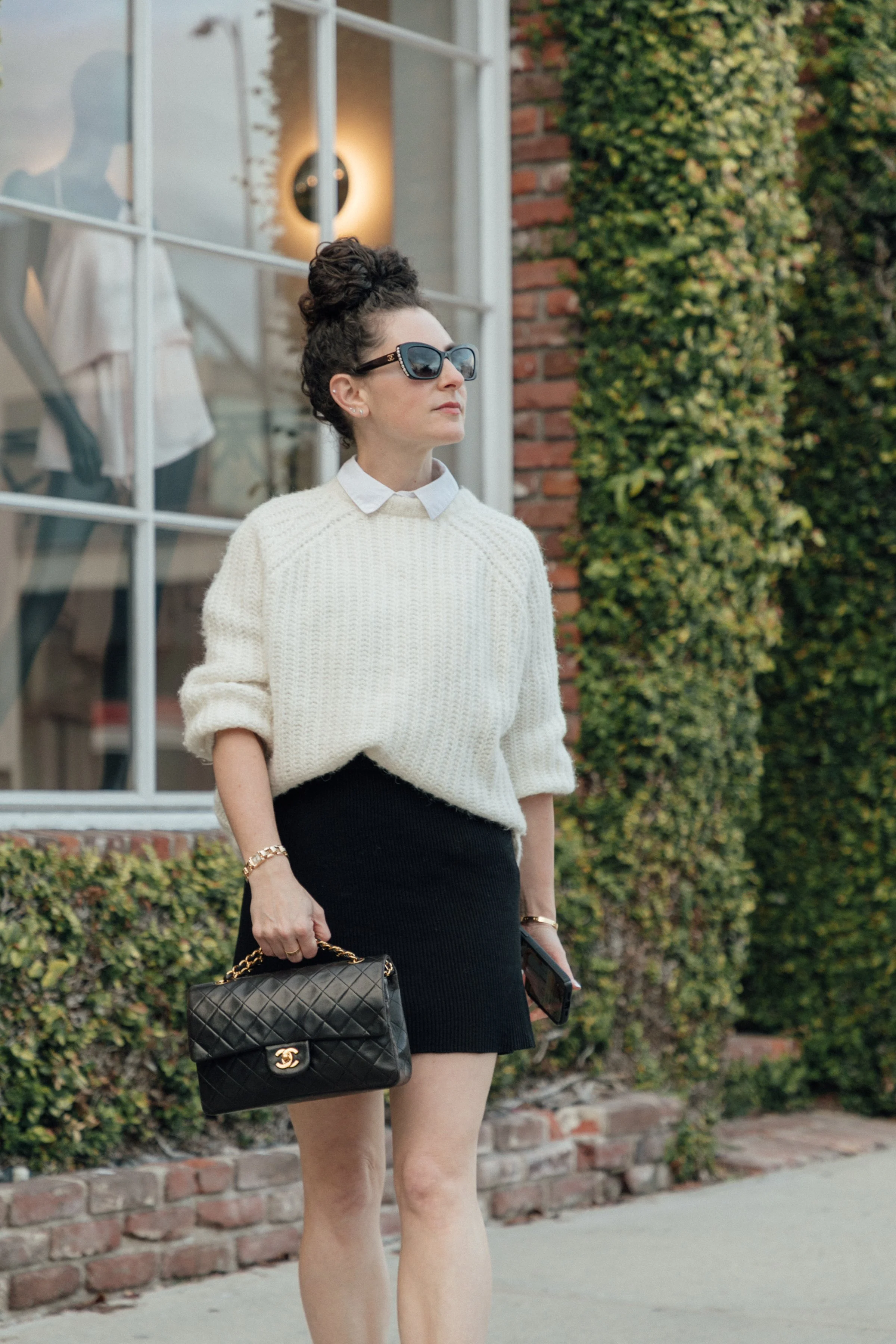 I topped today’s look off with a black mini skirt, sunnies, and a classic bag.
