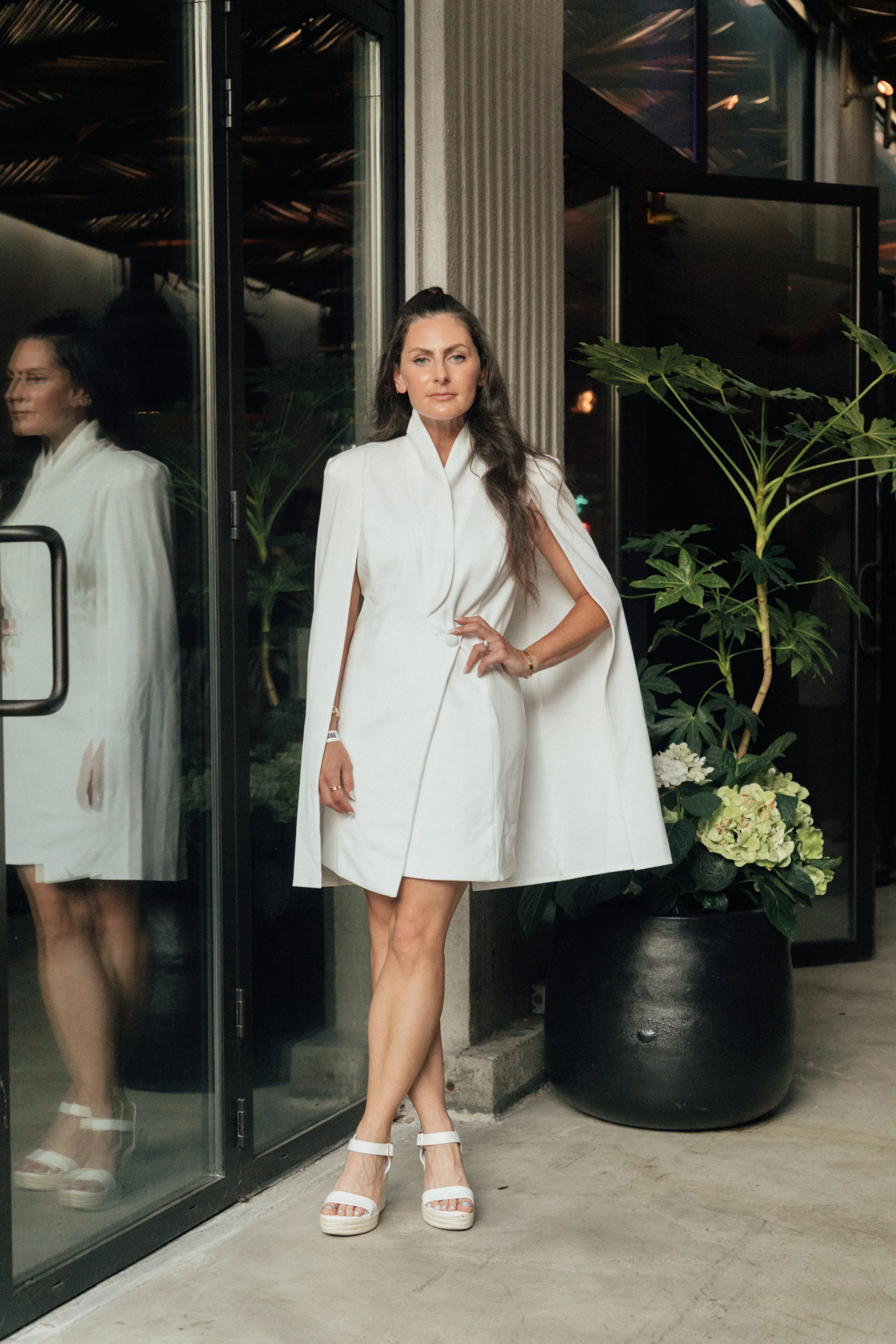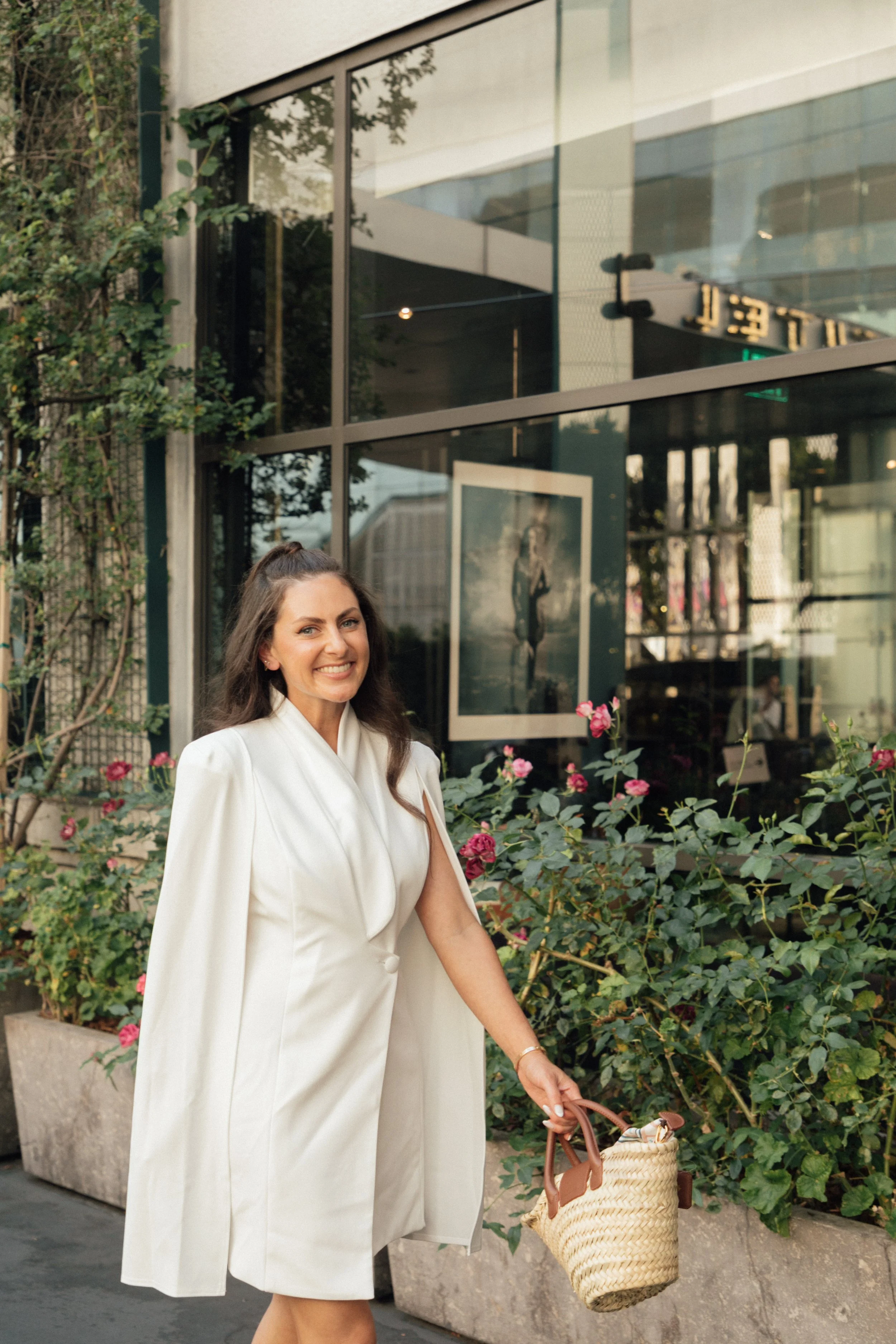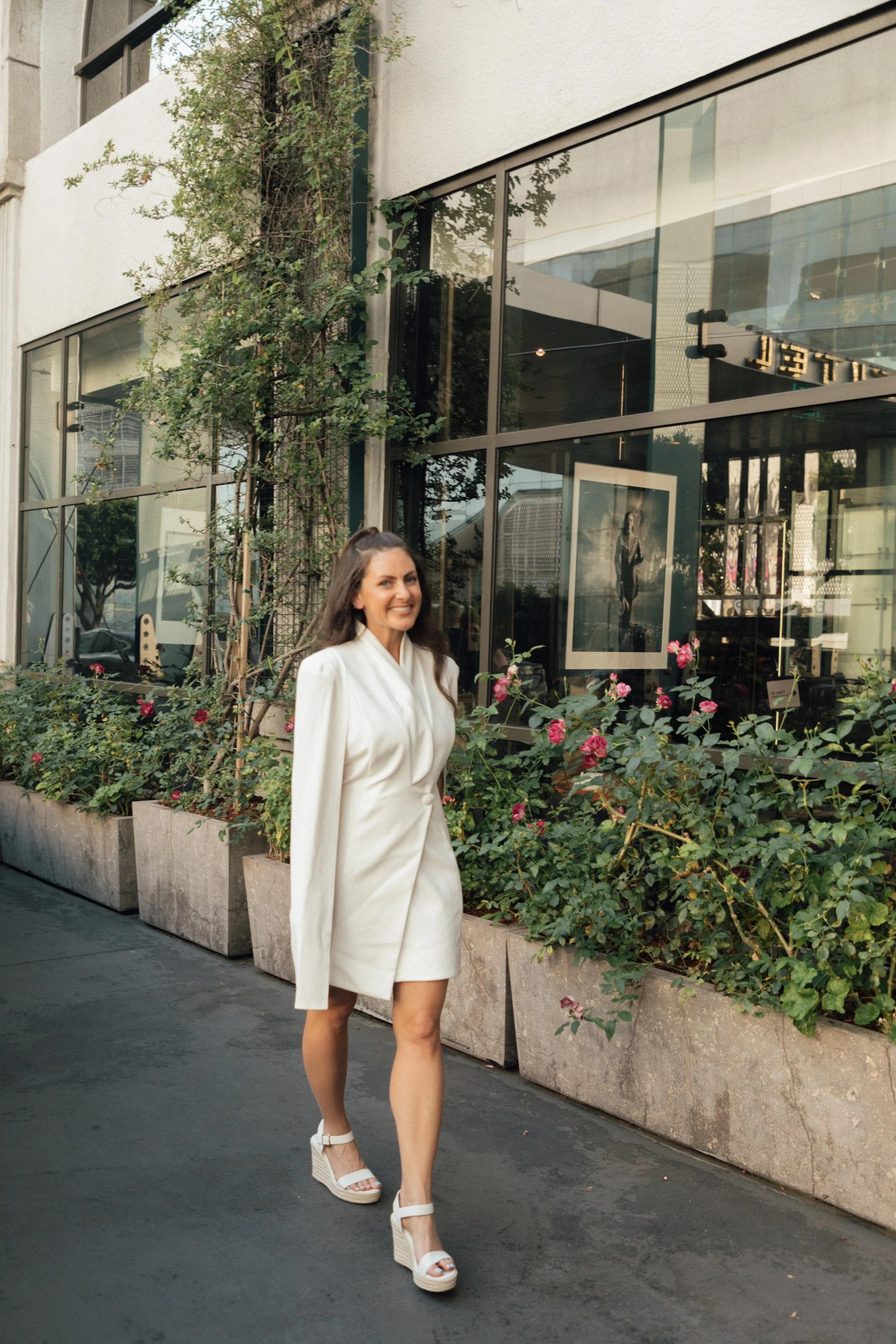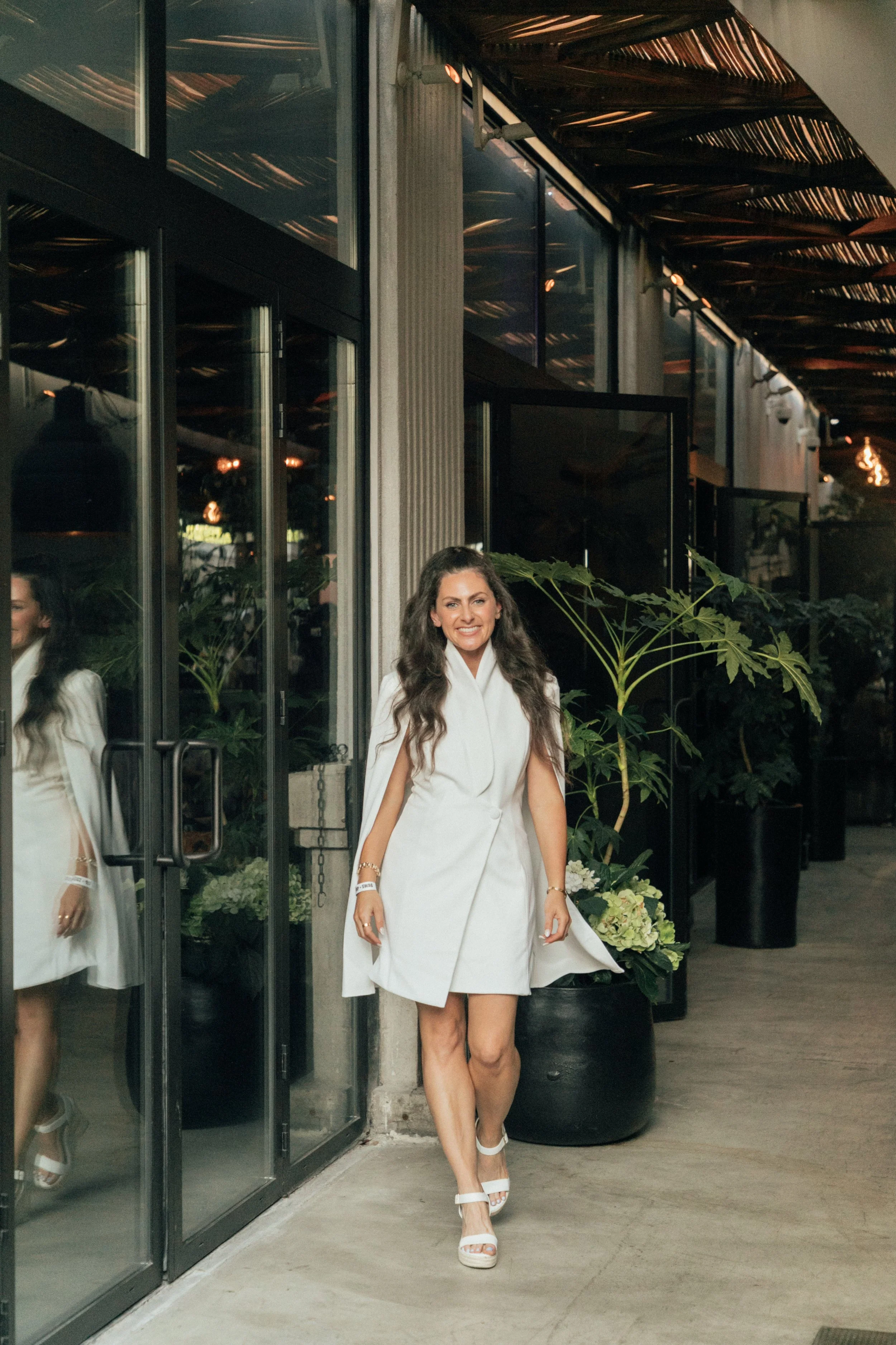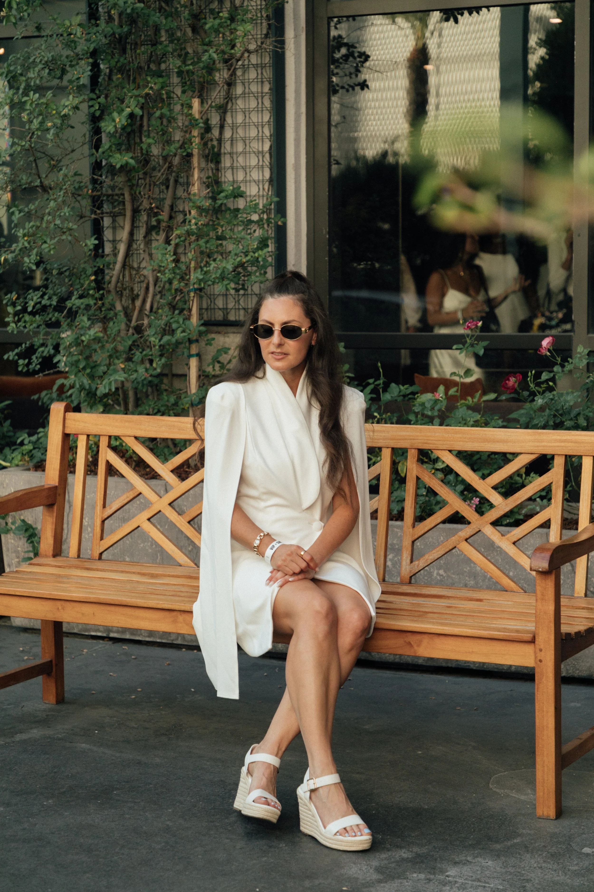 I recently walked in a fashion show in Beverly Hills which I shared more about in this recent post here. I had the best time and especially enjoyed attending a white party prior to the show. I posted a video of me wearing this white dress with a cape on my Instagram and received a ton of DM’s asking where I got this dress. Today, I’m sharing all of the details along with photos I took at the white party. I can’t recommend this dress enough and I got so many compliments. It’s comfortable, chic, and it runs true to size.